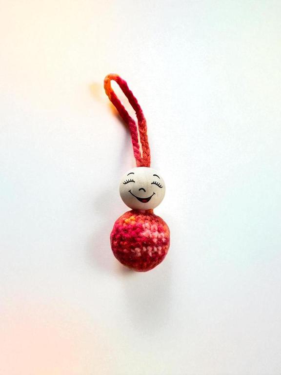 Dörte mit ihren handgestricken Socken, tollen Handpuppen und süßen Taschenbaumler.