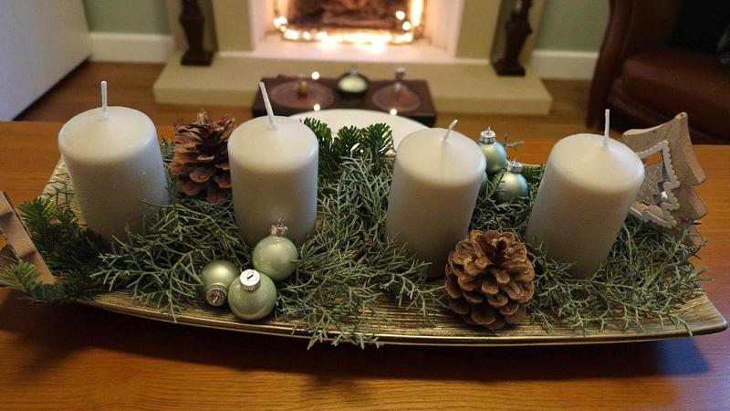 Adventskränze und weihnachtliche Gestecke, leckere Linzertorten