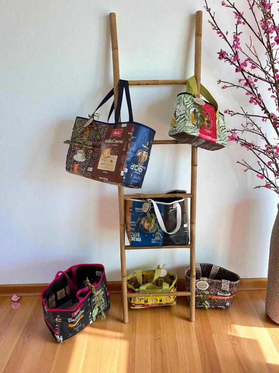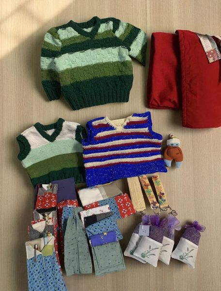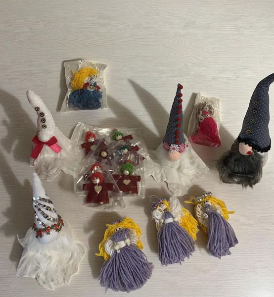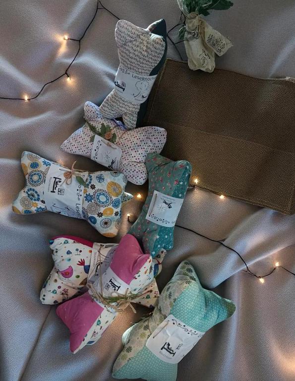 Mit Liebe handgemachte Taschen, Türringe, Weihnachtsstiefel, Leseknochen und leckere Leckereien.